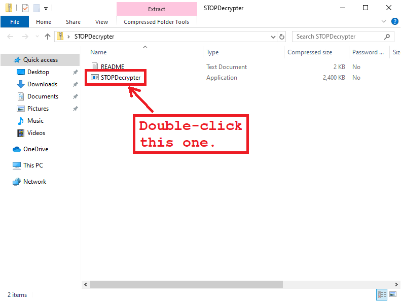 When a window opens with two files in it (“README” and “STOPDecrypter”), double-click on the one named
