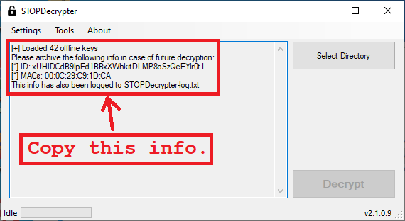 STOPDecrypter will now open, and will show your ID's and MAC addresses in the box on the left.
