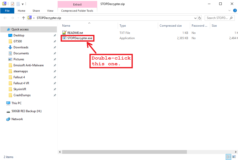 When a window opens with two files in it (“README” and “STOPDecrypter”), double-click on the one named