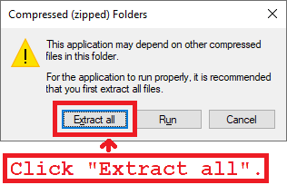 3. Windows will warn you about the application depending on other files. Click the Extract all button to prevent errors.